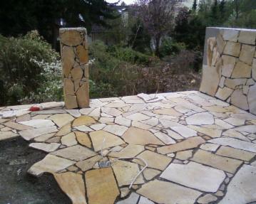 Hier wird eine Dachterrasse mit italienischem Naturstein